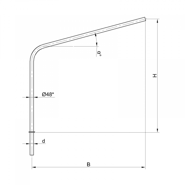 Однорожковые кронштейны К2-1,0-0,5-0-1 предназначен для крепления светильника на трубчатой опоре освещения. Завод опор освещения «Альдекс» изготавливает однорожковые консольные кронштейны из стального проката. Собственное производство позволяет выполнять изделия надлежащего качества и в кратчайшие сроки. Конструкция однорожковых кронштейнов К2-1,0-0,5-0-1. Конструкция консольных однорожковых кронштейнов К2-1,0-0,5-0-1 представляет собой гнутую металлическую трубу заданных размеров.