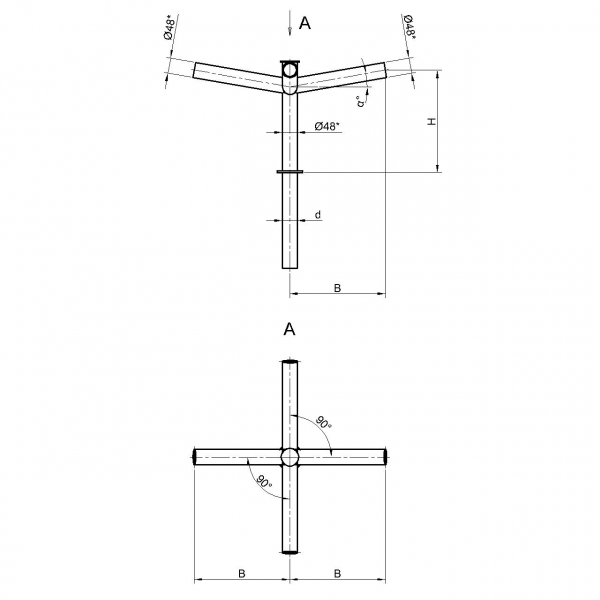 Двухрожковые кронштейны К23-1,0-1,0-1-1 предназначены для крепления светильника на трубчатой опоре освещения.