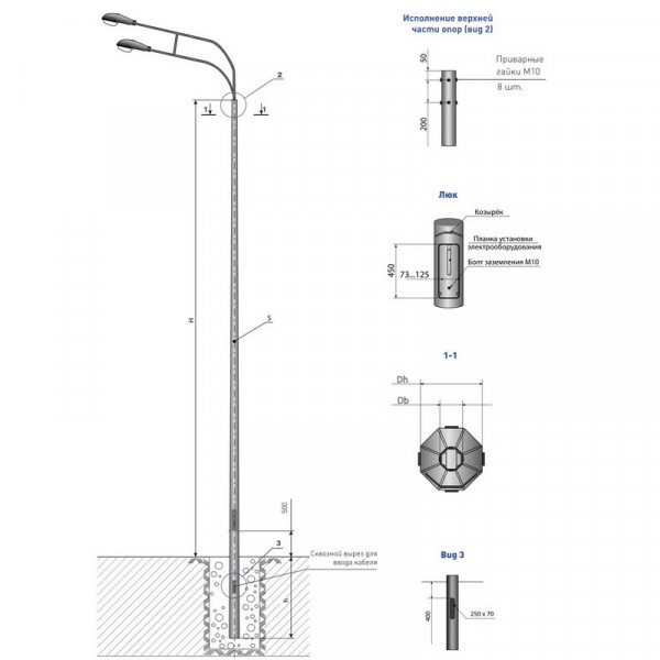 Опора освещения НПГ-9,0/11,0-02-ц, где: