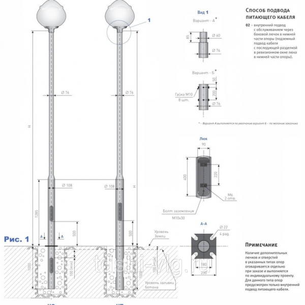 Опоры НФ предназначены для освещения скверов, парков, набережных, коттеджных посёлков. Используются для установки торшерных светильников и декоративных кронштейнов.