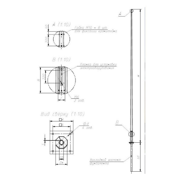 Опора НФГ имеет фланцевую конструкцию, что предполагает наличие технического люка, используемого для доступа к оборудованию, которое подведено через полую часть опоры.